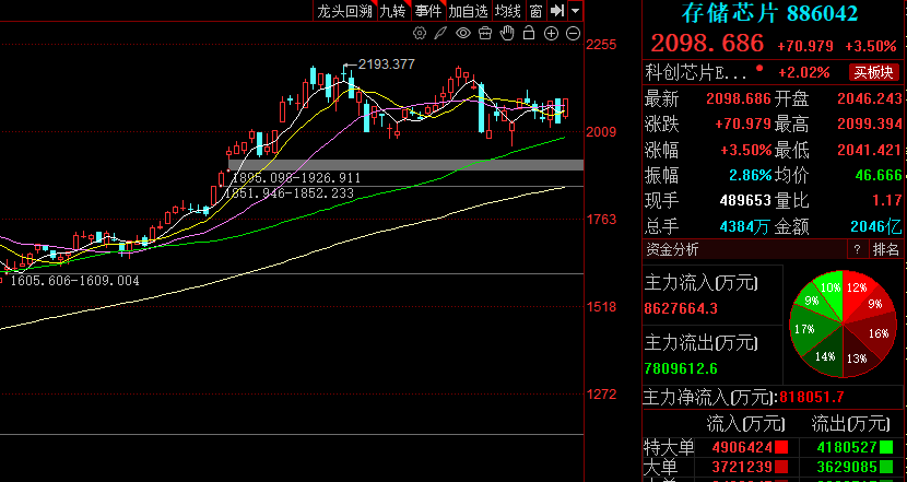 在存储芯片板块带动下,先进封装、半导体设备等板块上涨。