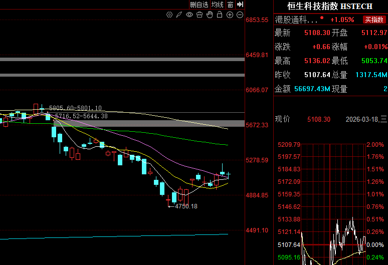 第二个市场热点,就是恒生科技指数的见底走强。