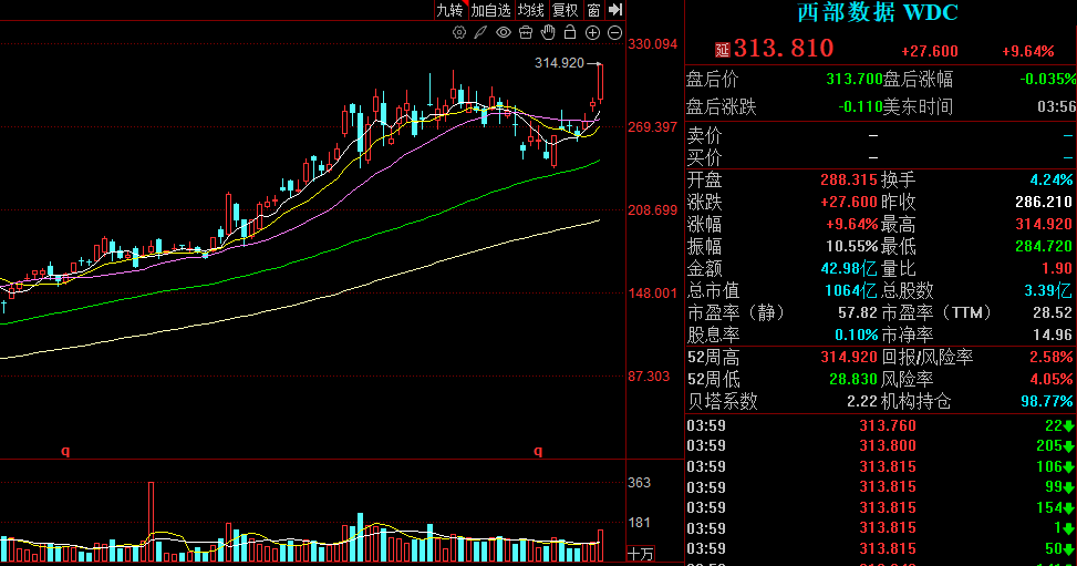 此外,美股的存储芯片股也都在走强,美光科技、西部数据、希捷科技等龙头纷纷大涨。